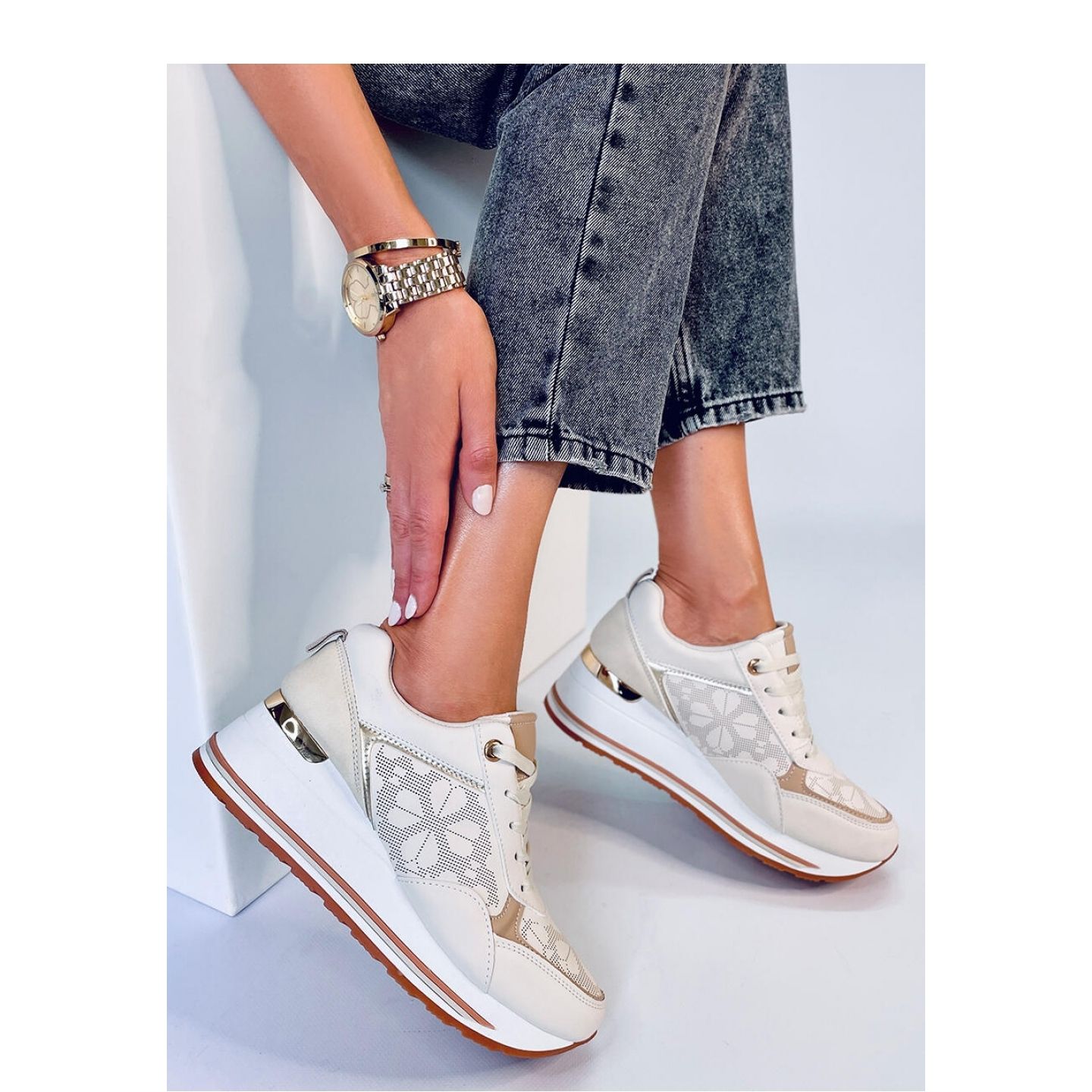 Details: Beige wedge sneakers