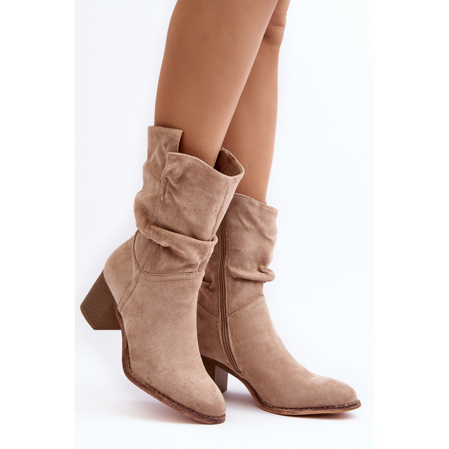 We present women's boots with a crinkled beige upper, which are an excellent choice for any occasion. These elegant shoes, made of high quality eco suede, combine style and comfort.