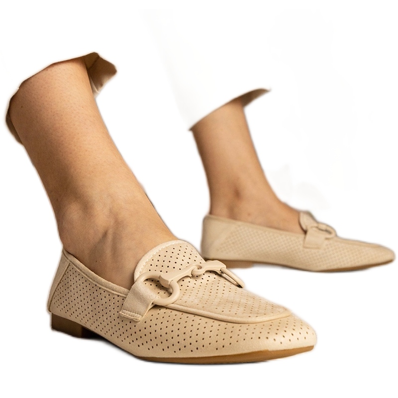 Beige women's openwork loafers are packed in an elegant, original manufacturer's box, which makes them an ideal gift for every occasion. Choose the 68-363 model and enjoy elegance and comfort at every step! These are shoes that will certainly enrich your wardrobe.