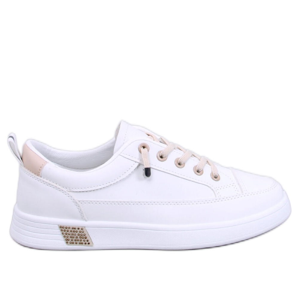 Discover comfort and style at every step with our beige and white women's sneakers! This unique model, laced with an elastic band, is an ideal proposition for all lovers of current trends. Sneakers combine a classic cut in an elegant white color, enriched with contrasting accessories and subtle inserts blown with delicate zircons that give them a unique character.