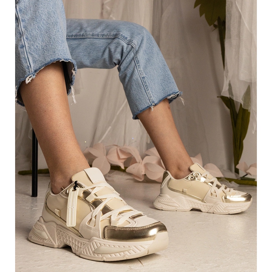 Details: Beige women's sneakers on a massive sole