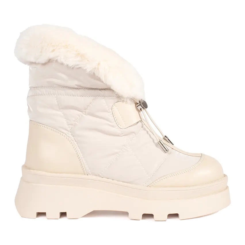 Plastic sole with tread ensures good adhesion and stability on various surfaces, which makes these snow boots an irreplaceable element of wardrobe in the autumn and winter season. Beige color makes them match many styles, from casual to more elegant. Additional warm warming means that you don't have to worry about cold days.