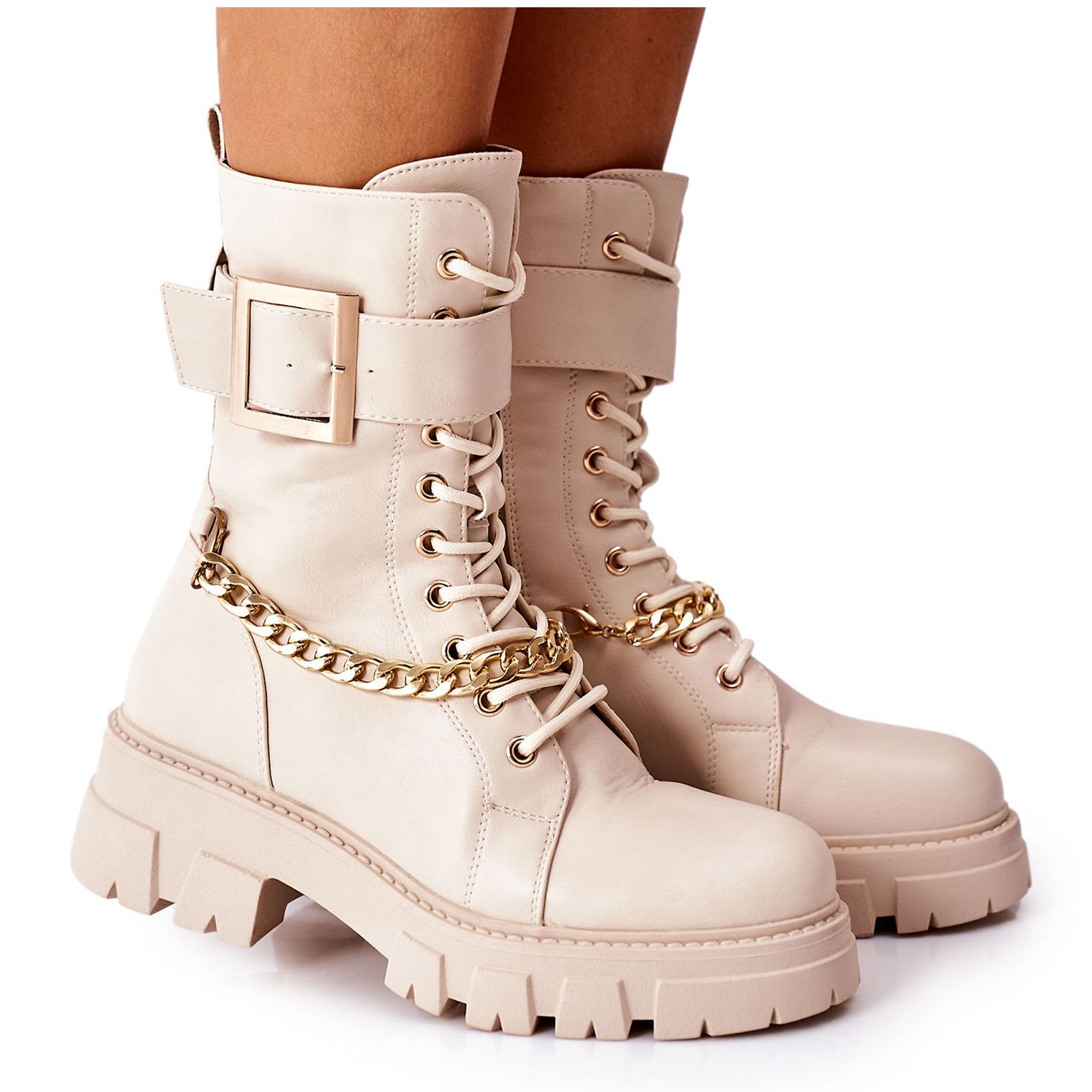 Inna marka Beige Workers Boots with Chain Buckle Tanaros
