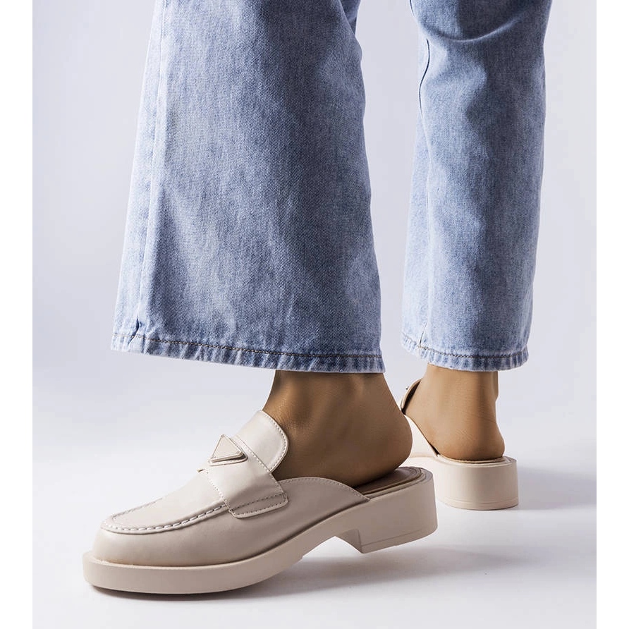 Classic, feminine Berkshire flip flops in the Beige shade are an ideal proposition for summer styling. The flat -heeled model with a built -in, rounded toe was made entirely of ecological leather, with delicate stitching, which add a subtle character. The front is decorated with a metal ornament that enlivens the design and introduces an elegant accent.