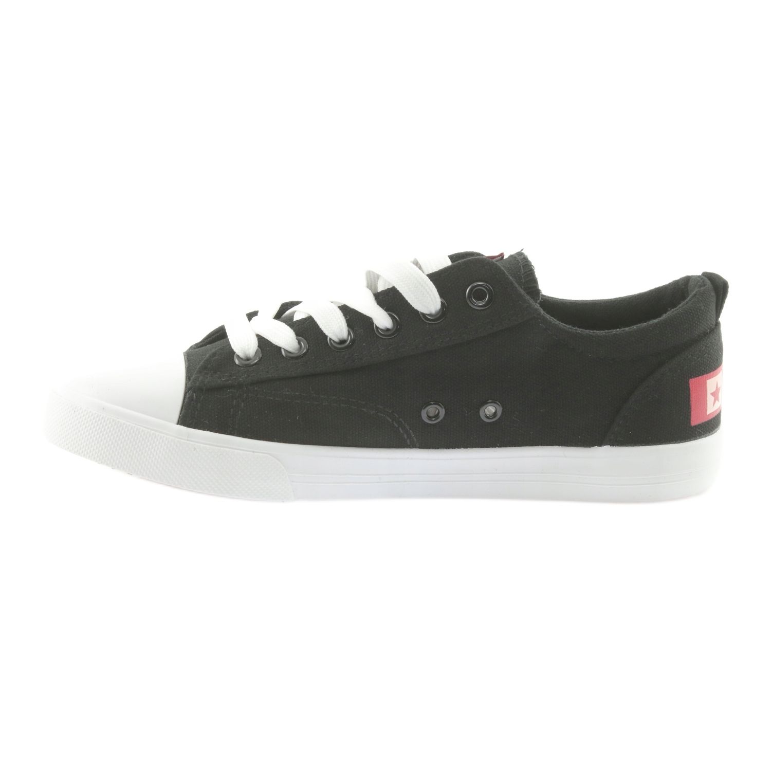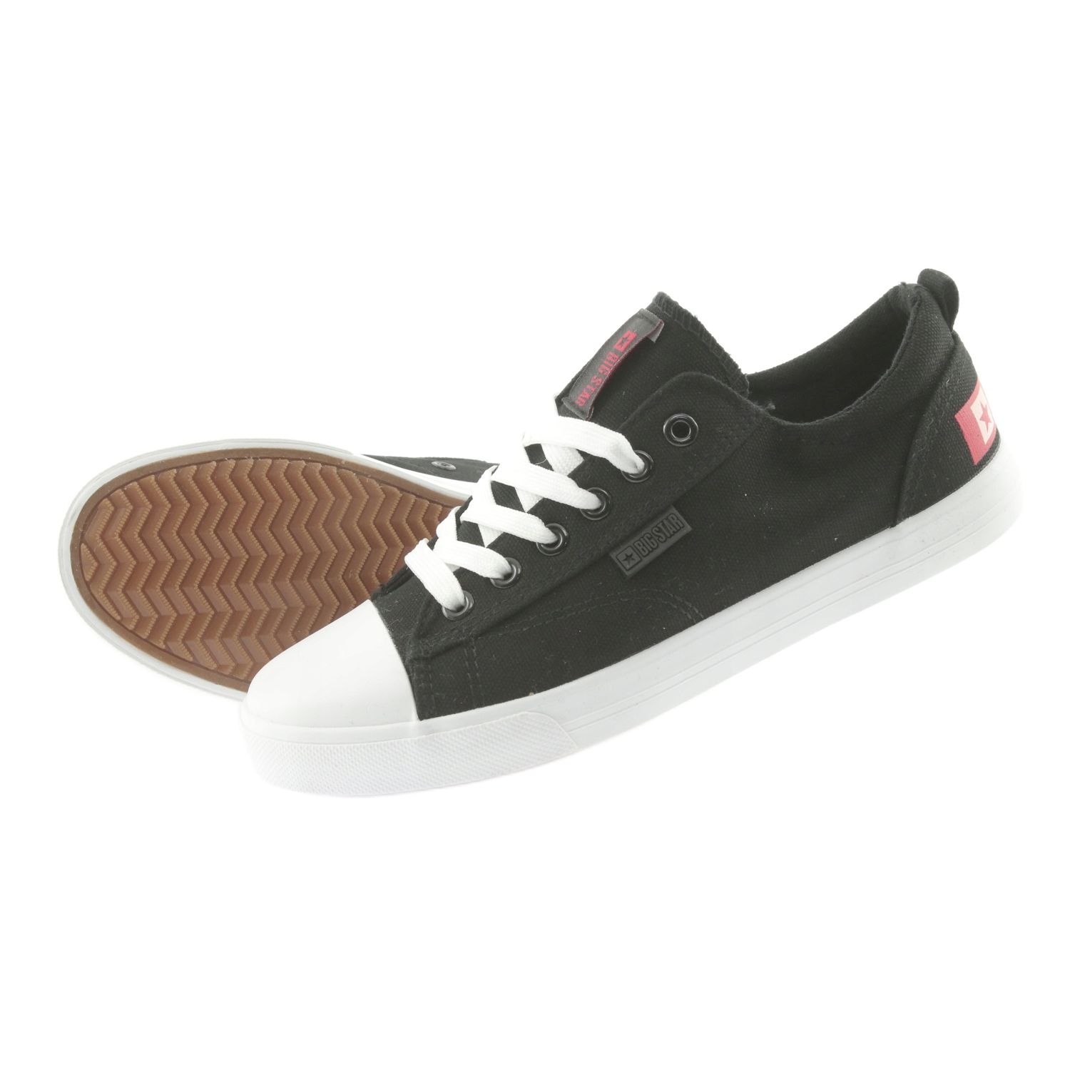 Are you looking for universal shoes that will work in the city, away and during everyday activities? Big Star 274877 is low, lace -up sneakers in elegant black with a subtle red accent. A classic, round nose and simple design match many styles - from jeans and t -shirt, through a casual dress, to a sports look.