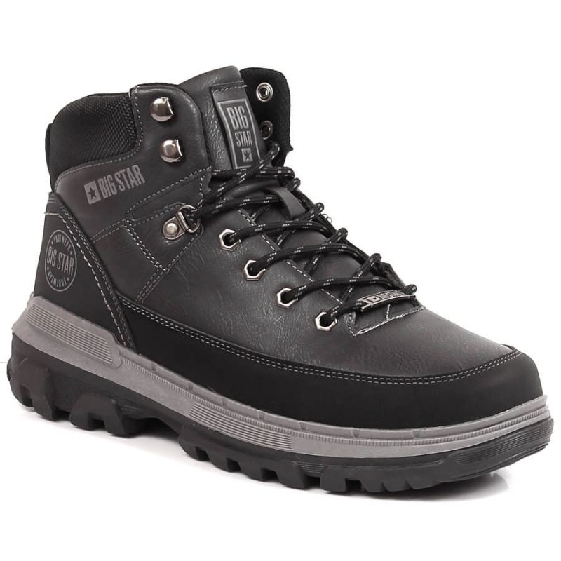 Big Star Int1801C boots - black, stylish and universal men's shoes created for everyday use. The ankle model combines urban aesthetics with practical solutions: lacing for the perfect fit, a textile lining for comfort and a rubber sole that provides good grip. Made of high quality synthetic materials, in elegant, universal black - easy to combine with various styles.