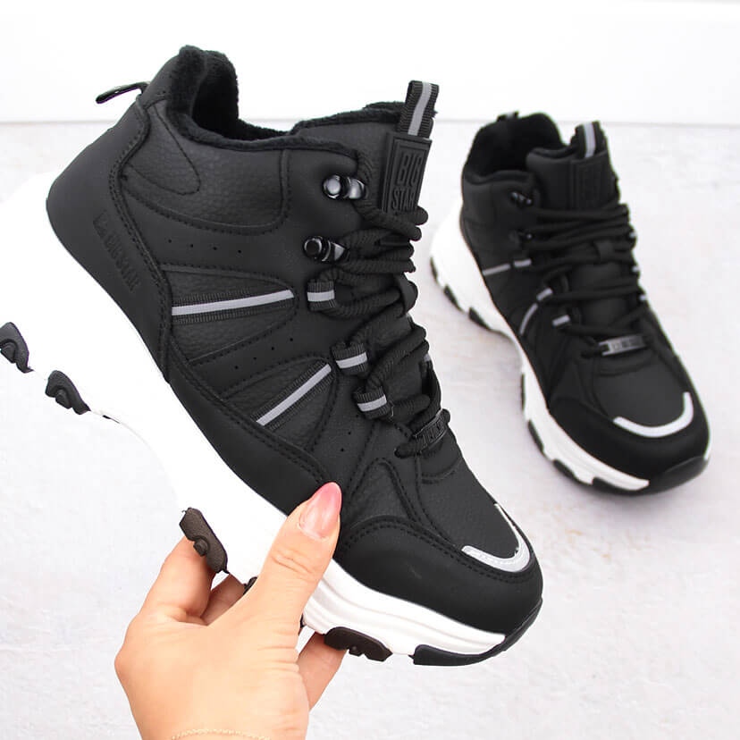 High -black Big Star OO274A160 insulated trappers are a great proposition for women who value not only fashionable appearance, but also comfort and functionality. Made of high quality ecological leather, these sports shoes are perfect for cooler days thanks to a solid, thick sole, which effectively insulates from cold.
