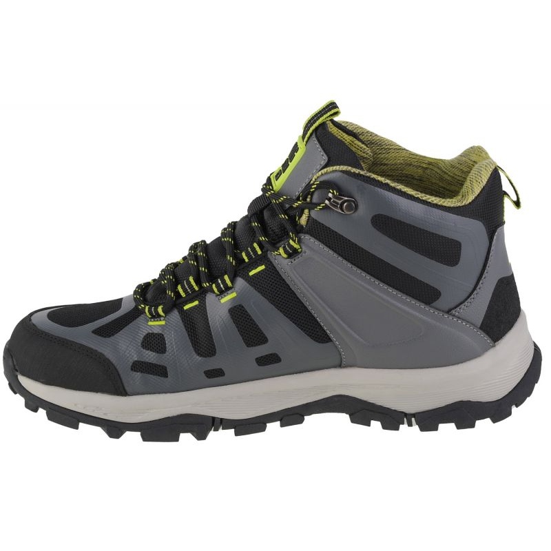 Solid, high trekking shoes Big Star in a universal shade of gray with black accents. Latched cut, durable, thick rubber sole with tread and a upper made of textile material and plastic ensure comfort and certainty of the step on the trails and in urban conditions.