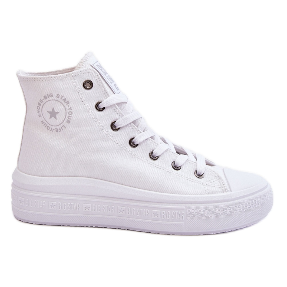 High women's Big Star White sneakers are the perfect choice for women who focus on style, comfort and fashionable look. Made of high quality textile material, these white sneakers are distinguished not only by attractive design, but also with functionality. On the side of the upper there is a decorative Big Star logo, which gives them character and makes them a perfect complement to every casual stylization.