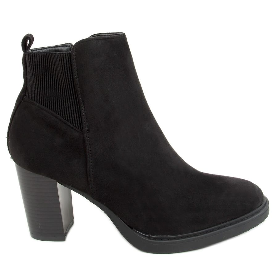 We present elegant 1155 Black high-heeled ankle boots that will perfectly match any autumn styling. These classic women's ankle boots, made of high-quality ecological suede, are distinguished by a slim 8 cm heel, adding charm and chic to every woman's figure.