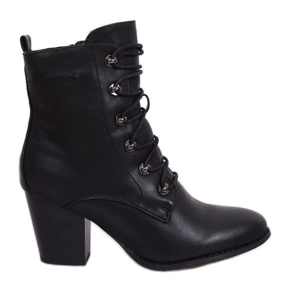 Inna marka Black 3698 Black high-heeled lace-up boots