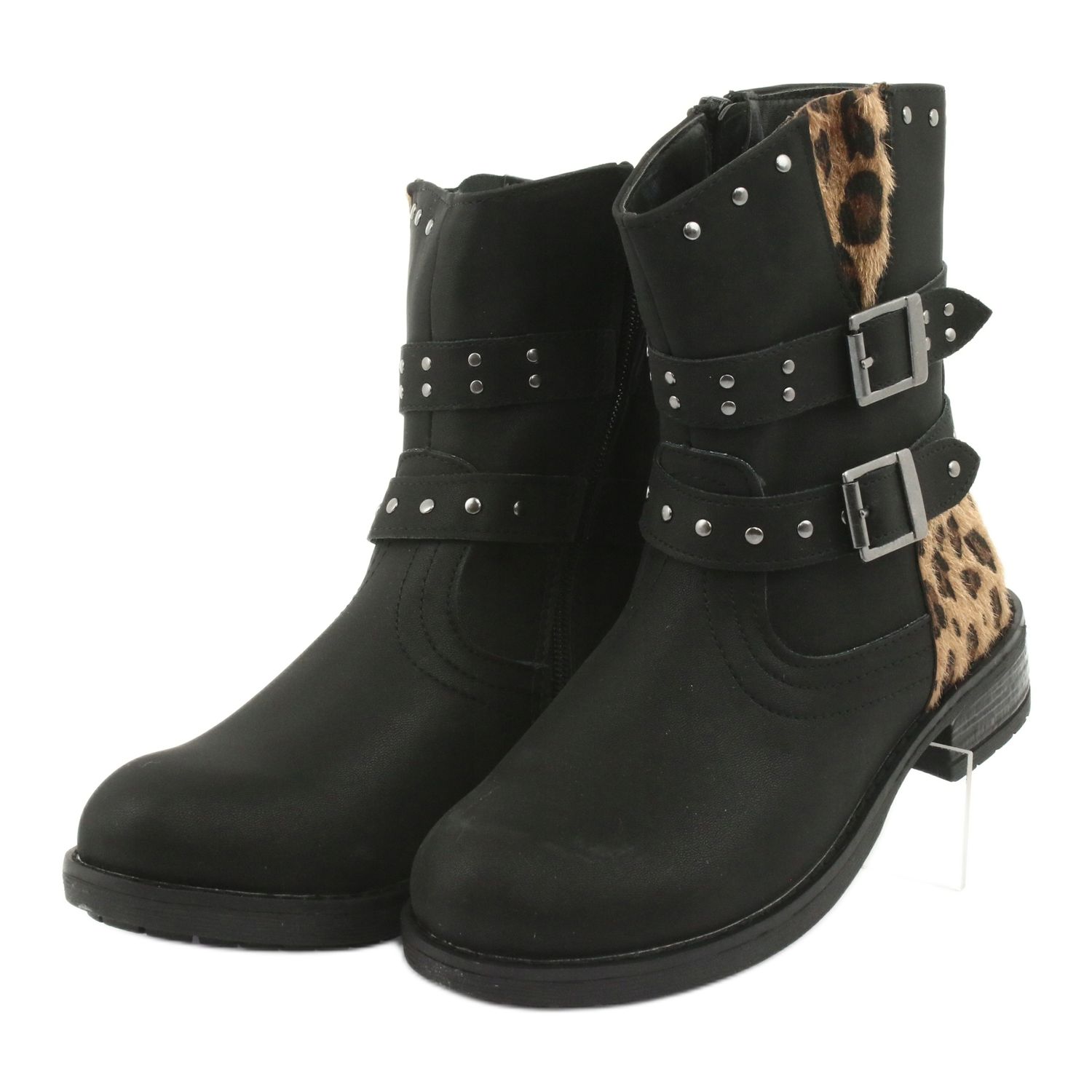 Leopard boots with black rhinestones American Club are a great choice for little fashion lovers. Made of high-quality ecological leather, these elegant boots combine style with functionality. Their upper, approximately 16.5 cm long, with a subtle leopard pattern, attracts attention, and the 3 cm heel adds comfort during everyday activities.