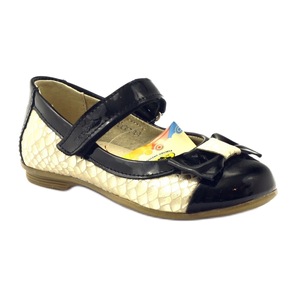Ren But black and gold ballerinas are a great choice for little ladies. Pattern 3227, made of high-quality natural leather, combines elegance and comfort. These charming shoes are fastened with Velcro, which makes them easy to put on and take off, and the stiff heel provides adequate support for the child's foot.