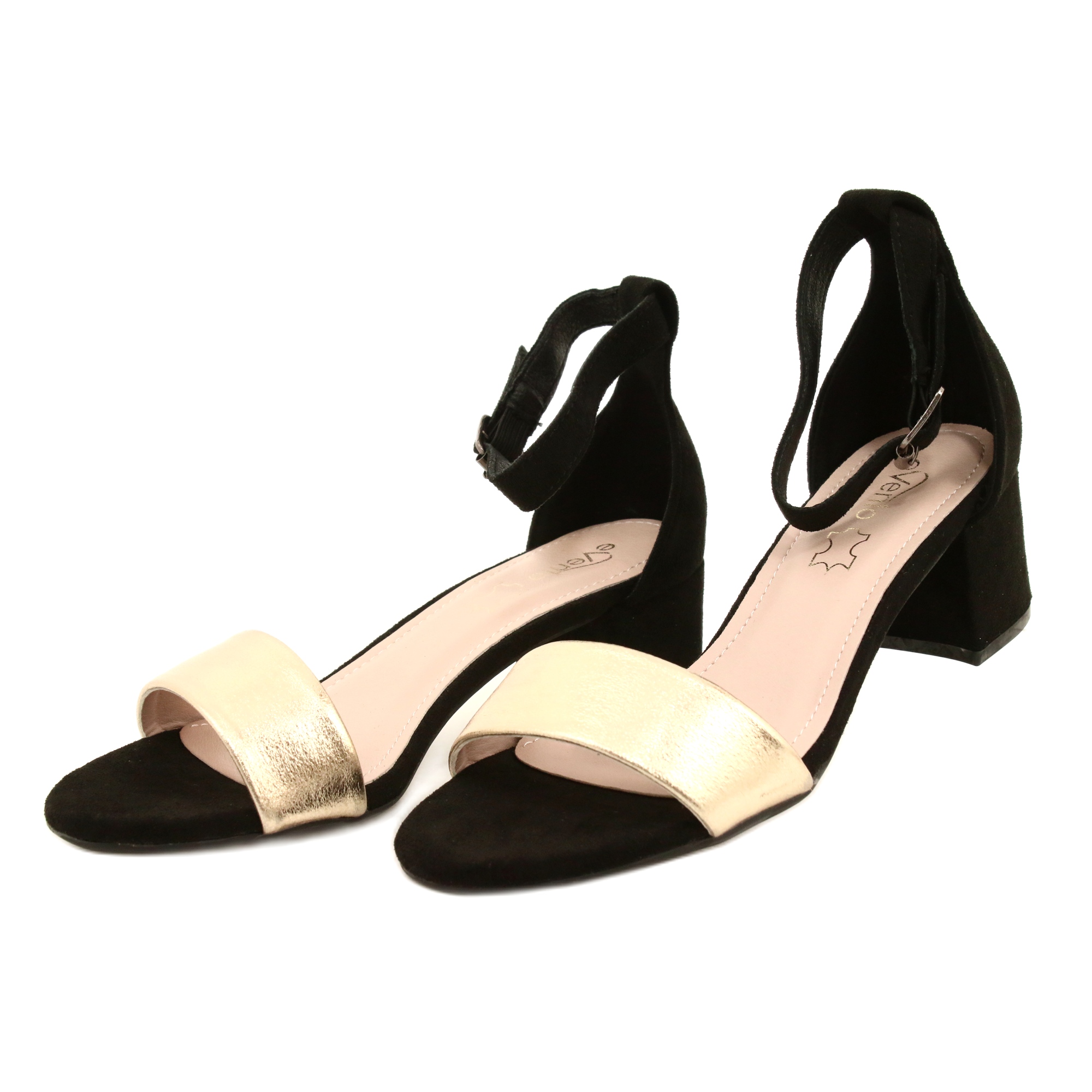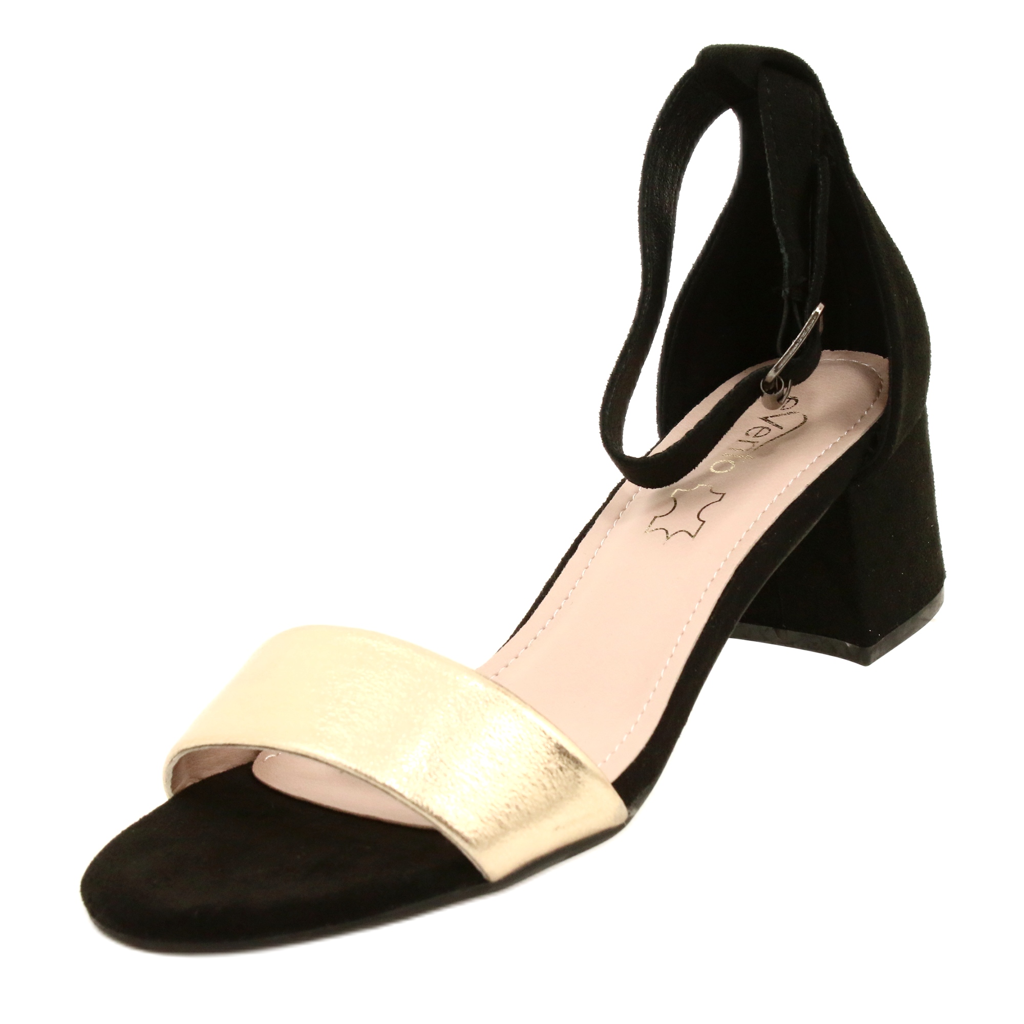 Sandals On The Heel Evento 20SD98-1618 in black and gold are elegant and stylish footwear that will be perfect for any occasion. Made of high-quality materials, the suede upper combined with ecological leather creates a harmonious whole that attracts attention and emphasizes the unique style.