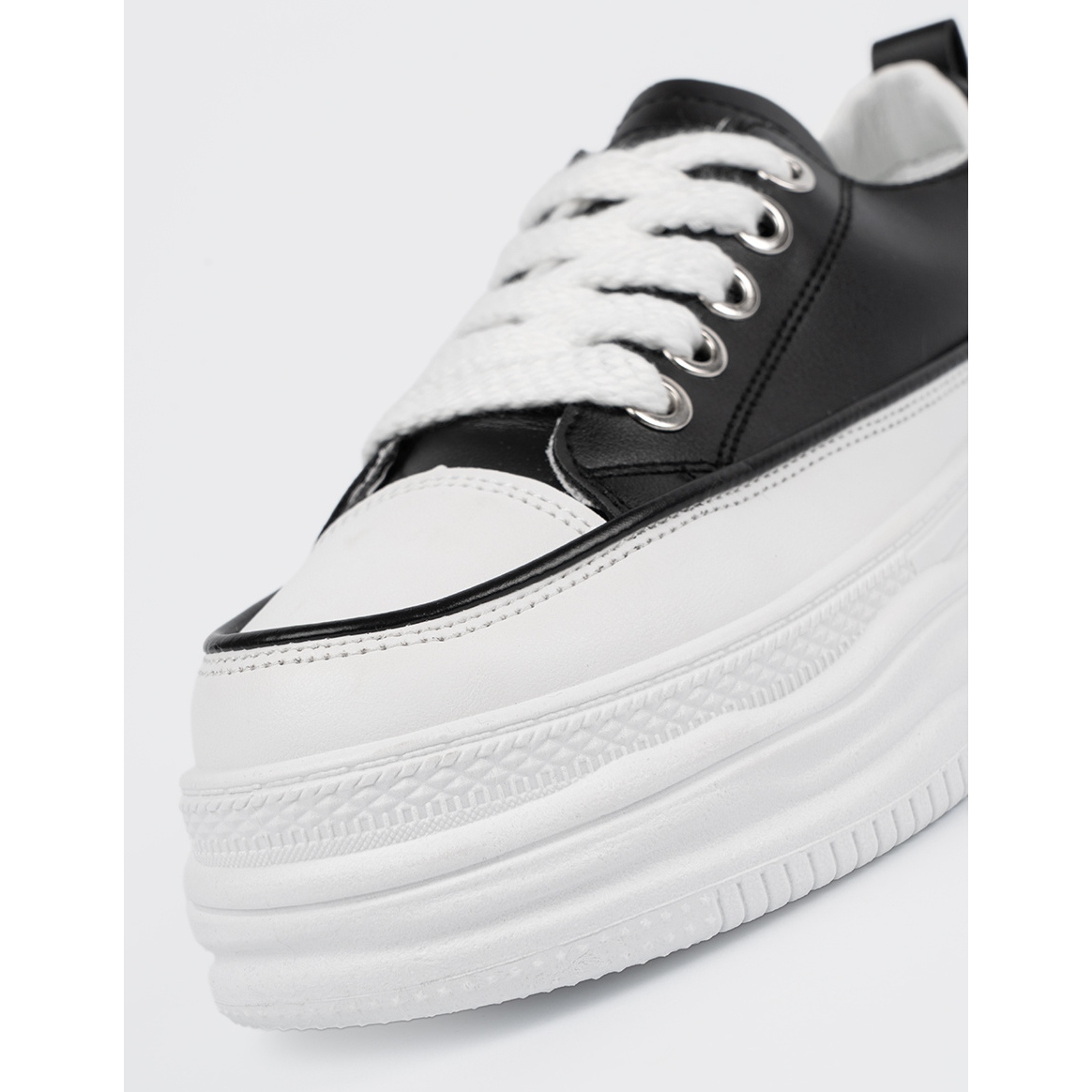 Sneakers are distinguished by a classic black color with white accents that give them a modern look. The 4.5 cm high platform ensures excellent cushioning and comfort of wearing all day, and thanks to the built -in, soft fodder, the foot is solidly supported. The round nose adds additional charm and makes the sneakers not only functional but also stylish.