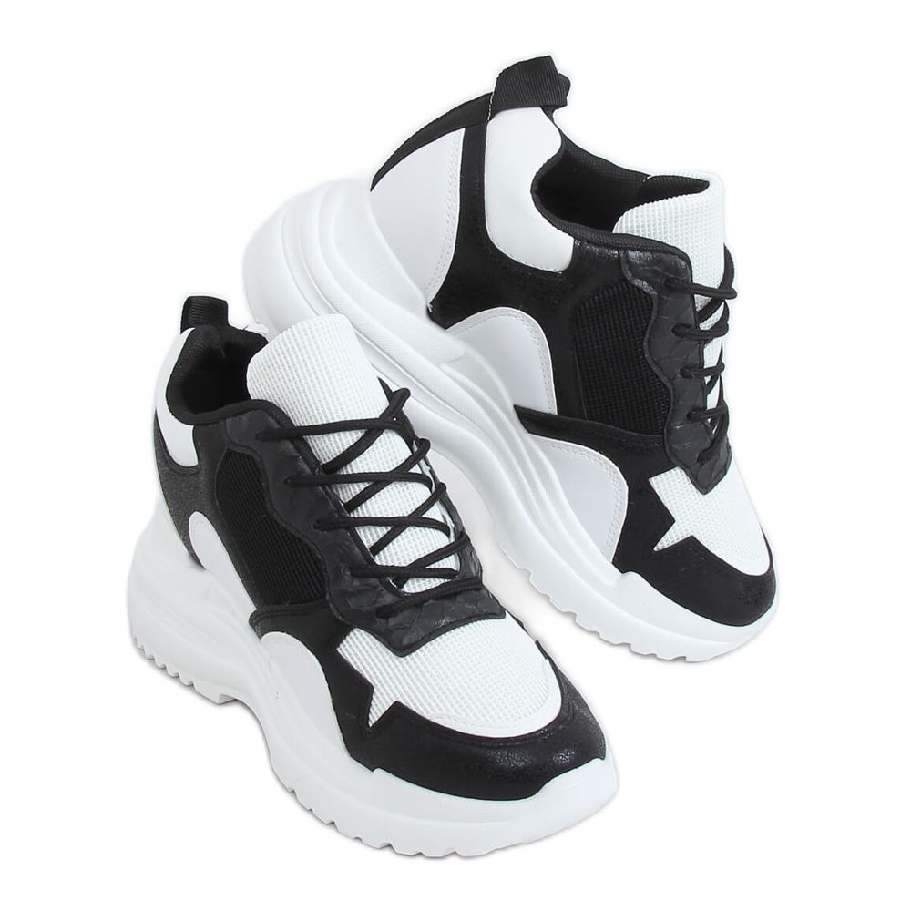 Discover a unique style with the 3171 Black wedge sneakers! These black and white sneakers are the perfect choice for women who value both fashion and comfort. Thanks to the hidden 8 cm wedge, you will gain additional centimeters that will optically lengthen your legs without sacrificing comfort.