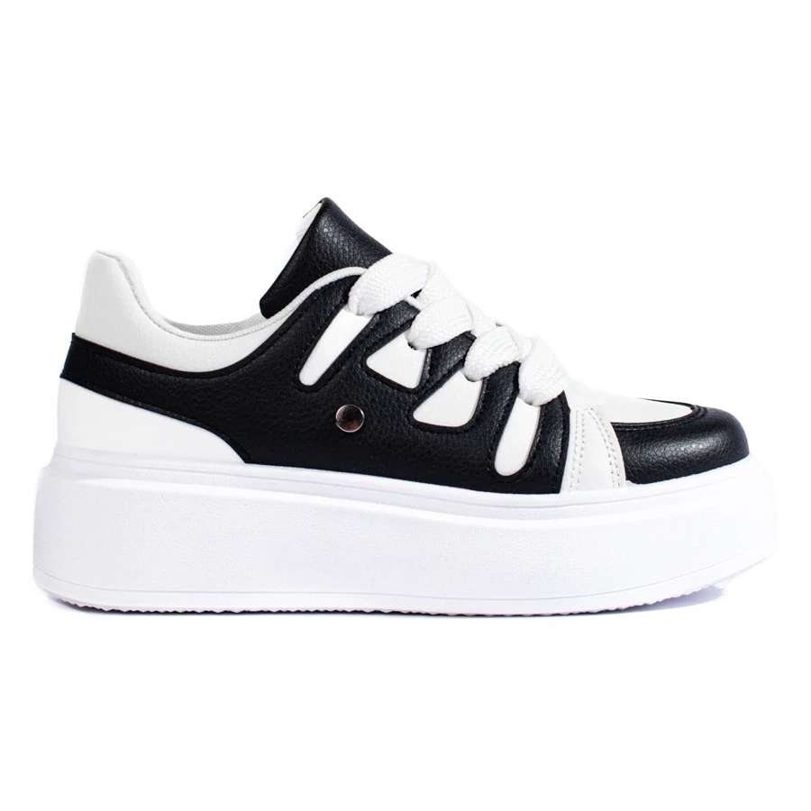 SHELOVET Black and white women's sneakers from Shelovet with a thick sole