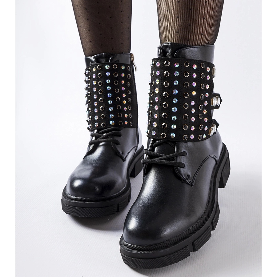 Black boots decorated with Cento zircons - elegance and comfort every day