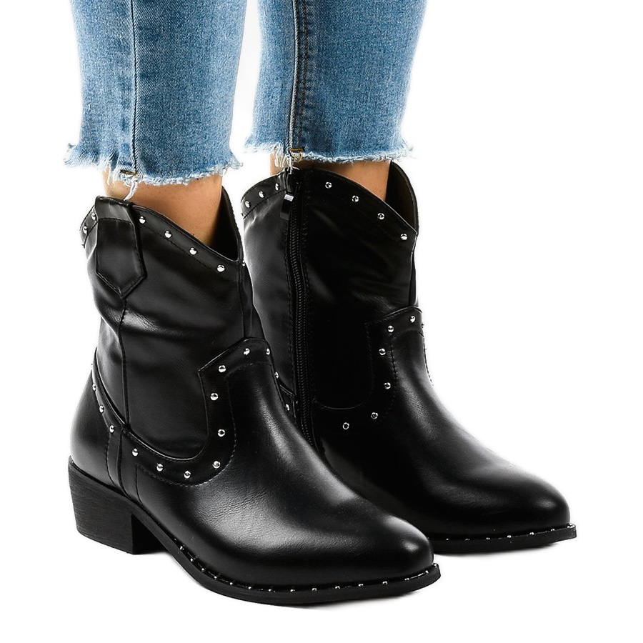 We invite you to discover elegance and style with black studded ankle boots L893-1. These unique women's cowboy boots, made of high-quality ecological leather, perfectly combine comfort with a fashionable design. Their elegant black color makes them versatile and ideally suited to various styles - from everyday to more sophisticated.