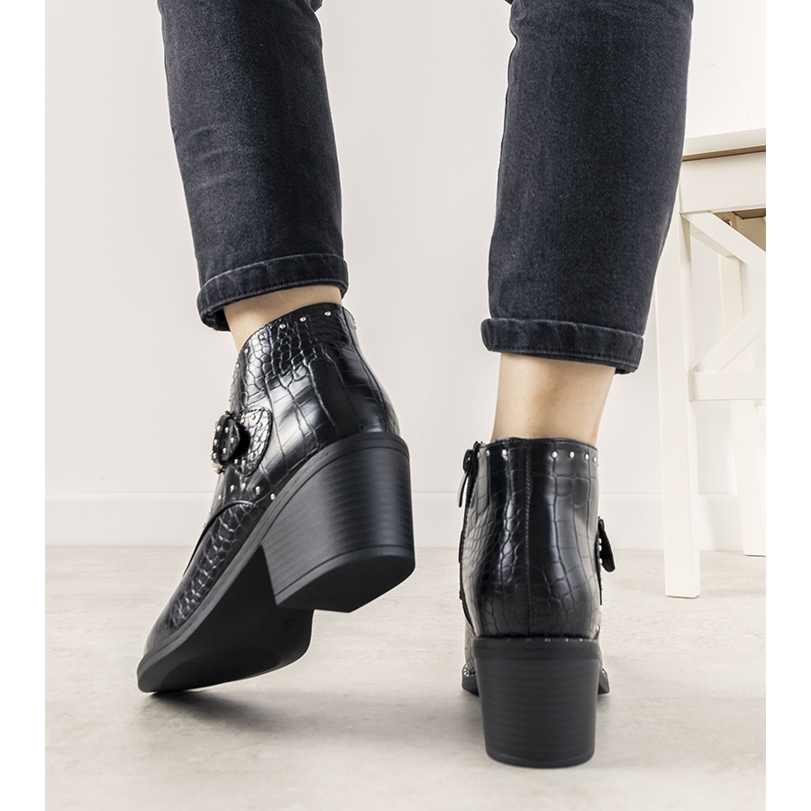 The black Montiana ankle boots with buckle are the perfect choice for women who want to combine style with comfort. The unique look of the Montiana model, inspired by crocodile skin, is sure to catch everyone's attention. They provide not only an elegant look, but also functionality thanks to the zipper, which allows for easy putting on and taking off the shoes.