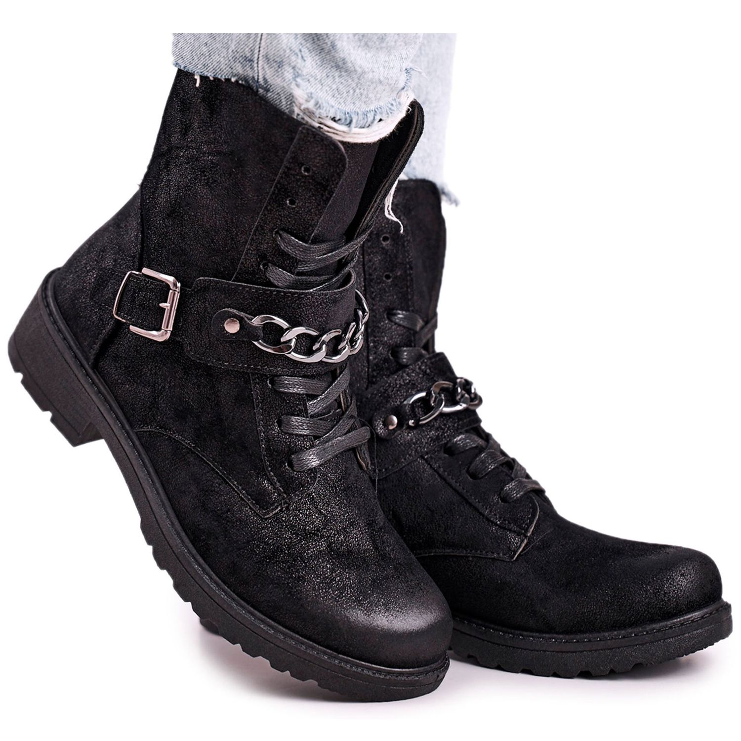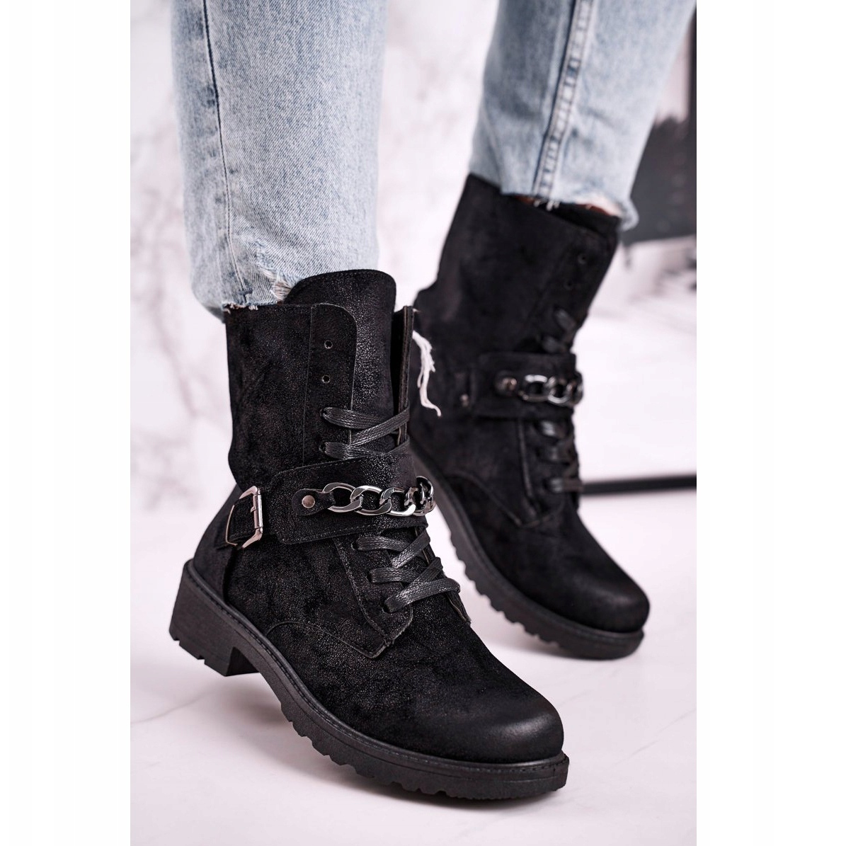 Worker Ankle Boots With Chain Suede Black Augusta are a great option for women who value not only style but also comfort. These unique boots made of eco suede combine classic design with modern accents, thanks to the decorative silver chain that gives them a unique character.