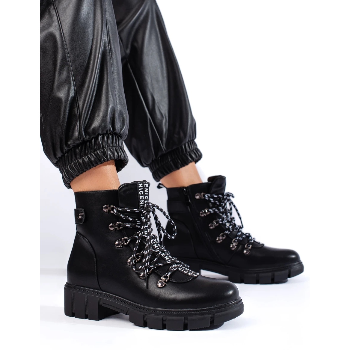 Vinceza black workers are practical and fashionable boots that will add character to everyday stylizations, while providing comfort and heat.