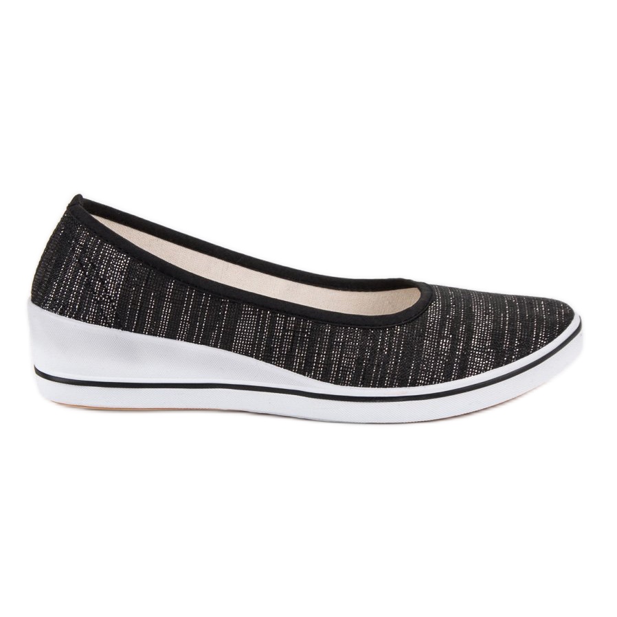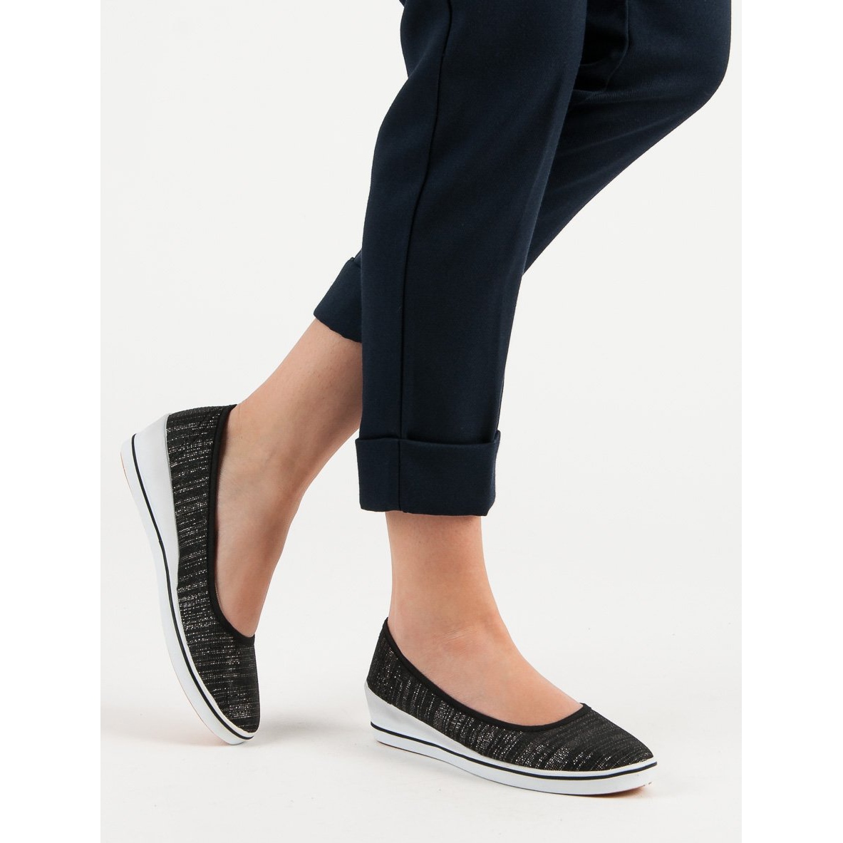 Black Ballerinas on a Wedge by Comer are a great choice for women who value comfort and elegance in everyday life. These classic slip-on shoes are distinguished by a round toe and a soft, stiffened heel, which ensures comfort even during long wear. Made of pleasant to the touch woven fabric, the ballerinas gently shimmer in gray, adding to their subtle charm.