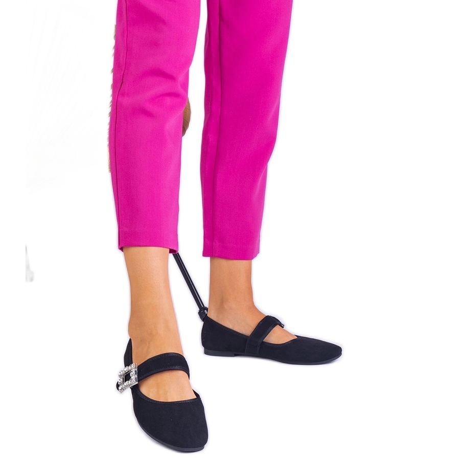 Inna marka Black ballerinas decorated with a buckle with crystals