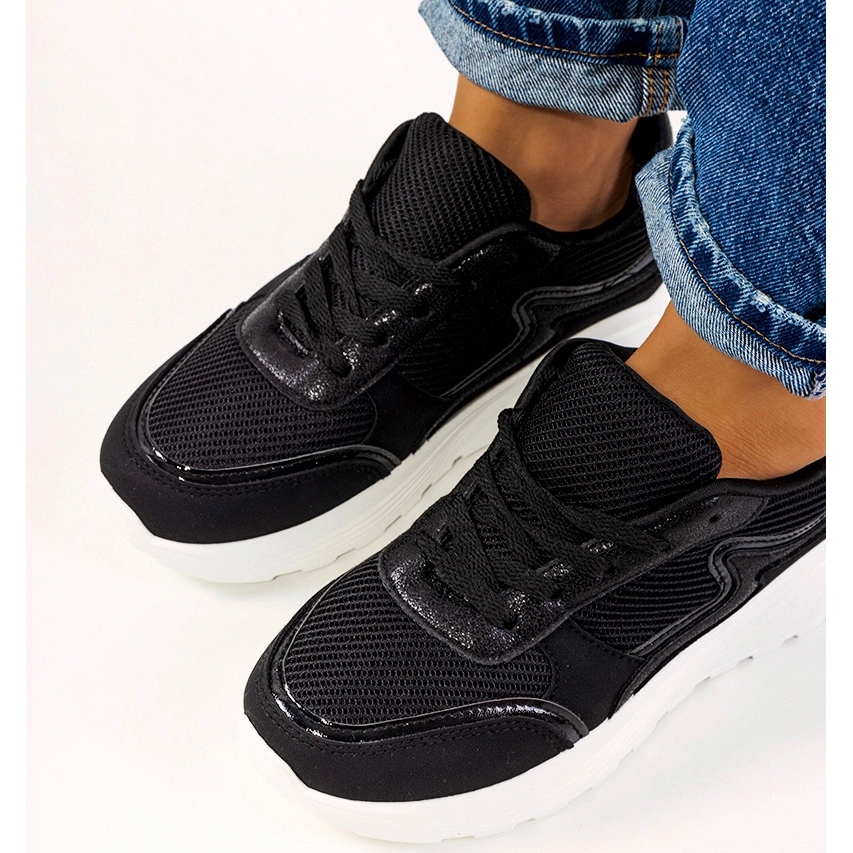 Classic, black sneakers bass is a must-have for casual and sports stylizations. Thanks to the elevated sole, you get a fashionable look and additional comfort at every step.