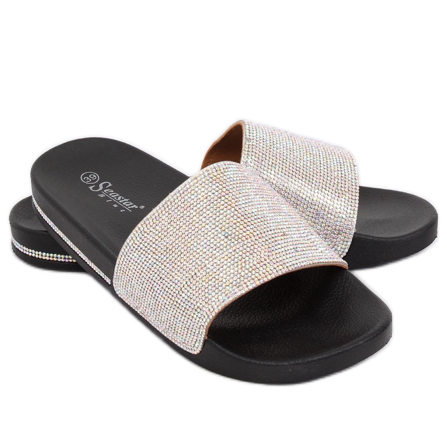 Inna marka Black BG21P Black slippers with cubic zirconias