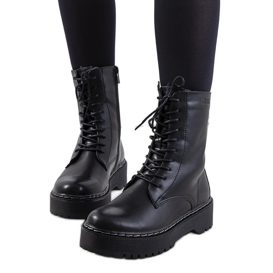 Discover style and comfort with the black Big Star II274109 ankle boots, which are a great choice for the fall-winter season. These fashionable combat boots from the women's collection combine modern design and functionality. Made of the highest quality ecological leather, they provide not only an elegant look, but also durability and ease of care.