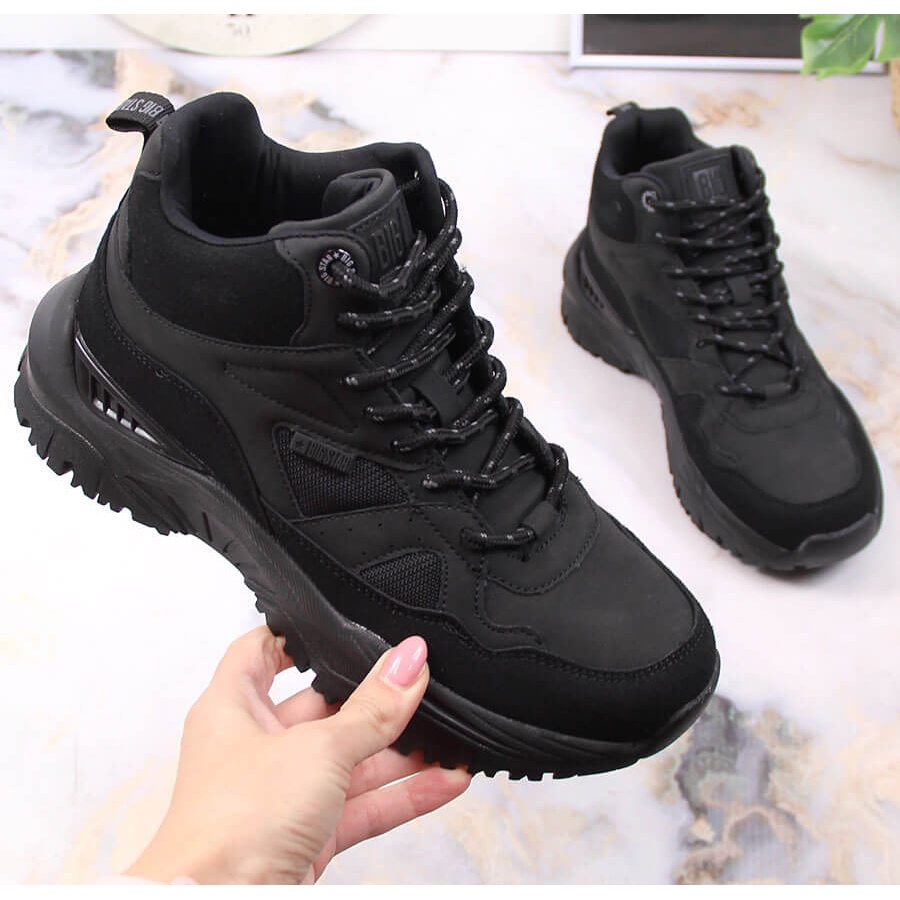 Women's sports ankle boots on a platform black Big Star KK274356 are a combination of style and comfort that perfectly fits into fashion trends. These elegant and functional shoes, made of high-quality ecological leather, are characterized by modern design and practicality.