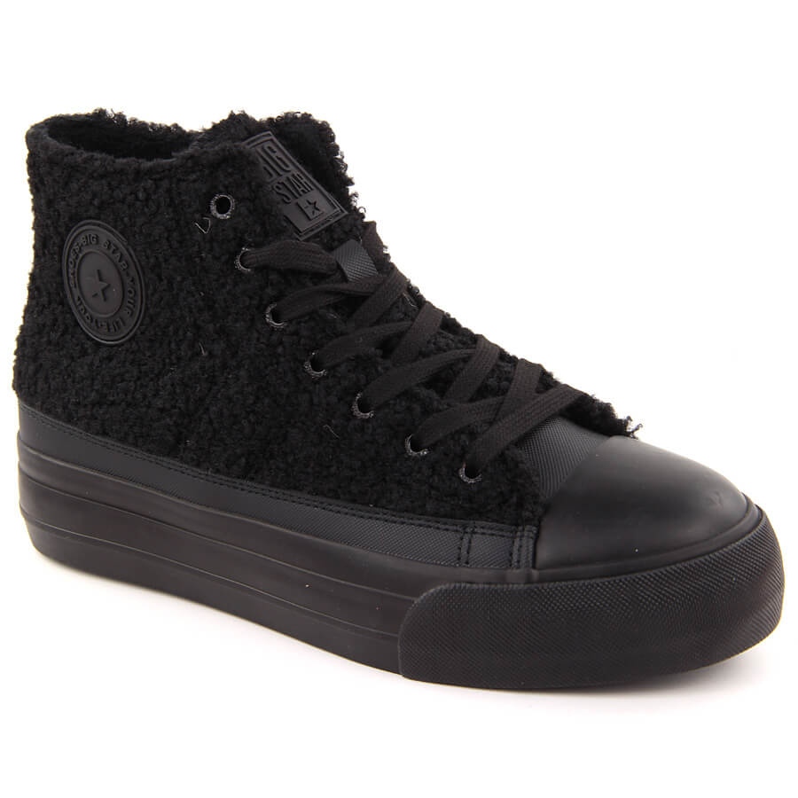 We present the sneakers insulated from a black sheepskin coat from the reputable Big Star brand - the OO274A443 model, which will be the perfect choice for cooler days. High sneakers combine style and comfort, becoming an inseparable element of every autumn and winter styling.