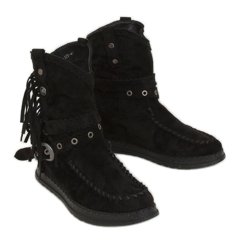 Introducing the ST-17P Black boho ankle boots, which are the perfect choice for the upcoming season! Made of eco-suede, these women's suede ankle boots with a hidden 7 cm wedge combine fashionable design with functionality. Decorated with fringes and stylish stitching, they are sure to attract attention and add character to any styling.