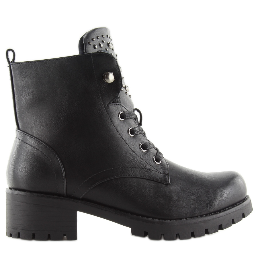 Discover exceptional style and comfort with the HQ-8A809-1 black combat boots. These women's rock-style boots are a great choice for women who want to express their personality. Their originality is given by the studded tongue, which attracts attention and emphasizes the character of each styling.