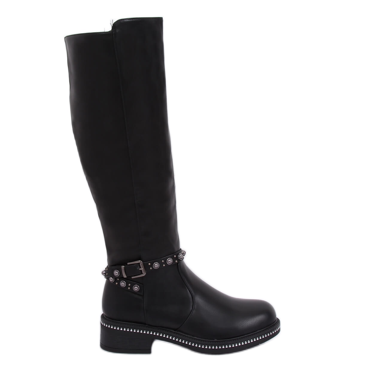 Discover elegance and comfort in one with the 0-263 Black women's riding boots. These unique flat shoes combine classic style with modern accents, perfect for everyday styling. The attractive studded strap and uniquely decorated sole attract attention and add character.