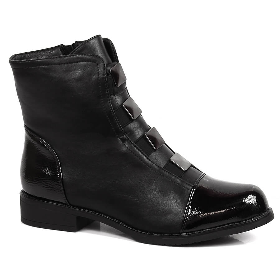 Women's ankle boots with decoration, insulated, black Sabatina are a great choice for every woman who values elegance and comfort. Made of high-quality ecological leather in a classic black shade, they are a universal wardrobe element that will work perfectly in both everyday stylings and more formal occasions.