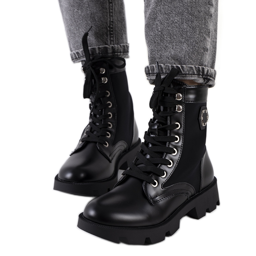 Black Keld trappers - solid, stylish and comfortable boots ideal for the autumn/winter season. The model is made of eco -leather with the addition of waterproof material, mounted on a thick, rubber sole with a tread. Thanks to light warming inside and insulated insert, they will provide comfort even on cooler days.