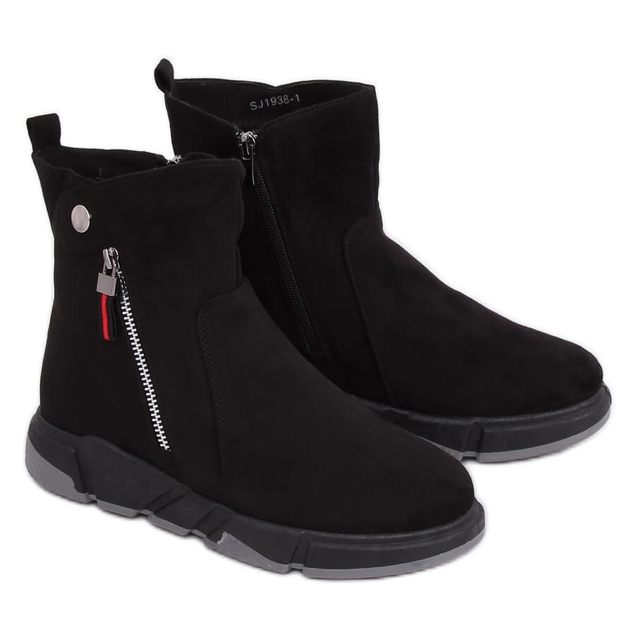 Black SJ1938 Black sports style ankle boots are the perfect choice for modern women who want to combine comfort with current trends. These stylish ankle boots will work perfectly in everyday outfits, adding a unique character to them. Made of high-quality ecological suede leather, they provide not only a fashionable look, but also comfort of wearing thanks to the delicate fur that lines the interior.