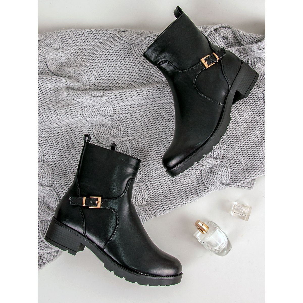 These black ankle boots are perfect for both casual stylings and more elegant combinations. Thanks to the 4 cm flat heel, they are not only fashionable but also extremely comfortable, which allows you to wear them for many hours without feeling uncomfortable. The round toe and stiffened heel provide adequate support for the foot.