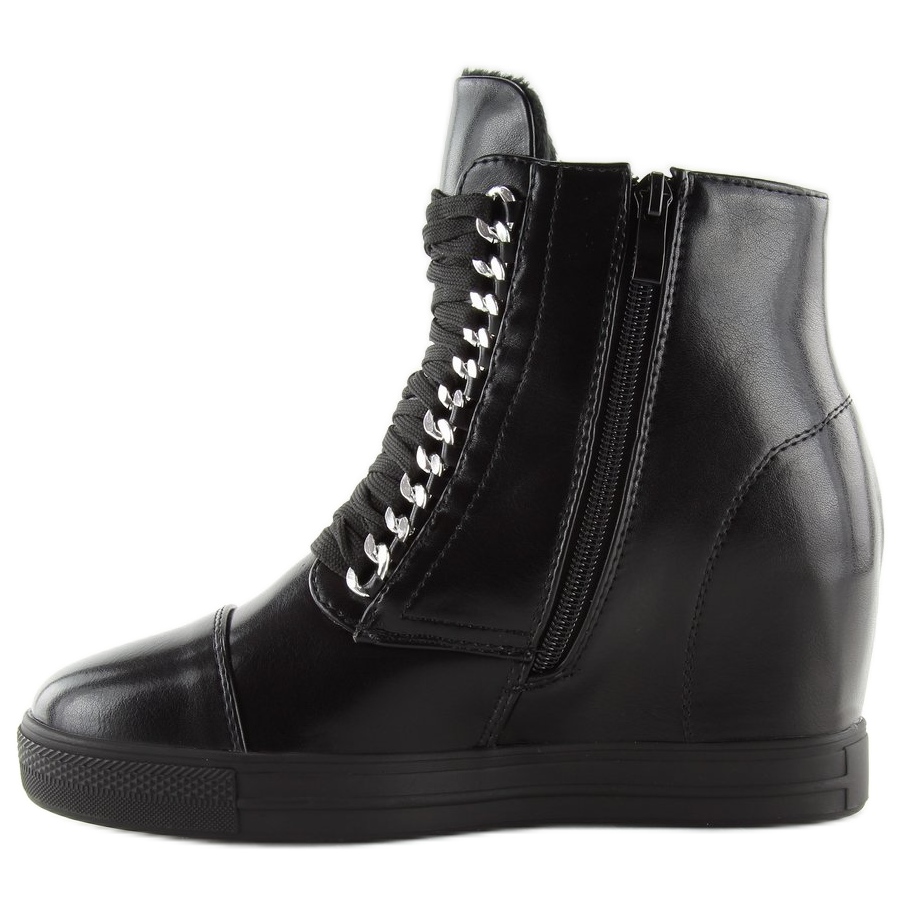 The NC737 Black hidden wedge ankle boots are the perfect choice for women who want to combine a fashionable look with comfort. These stylish 7 cm high ankle boots will add a touch of sparkle to your wardrobe, thanks to their shiny finish that attracts attention.