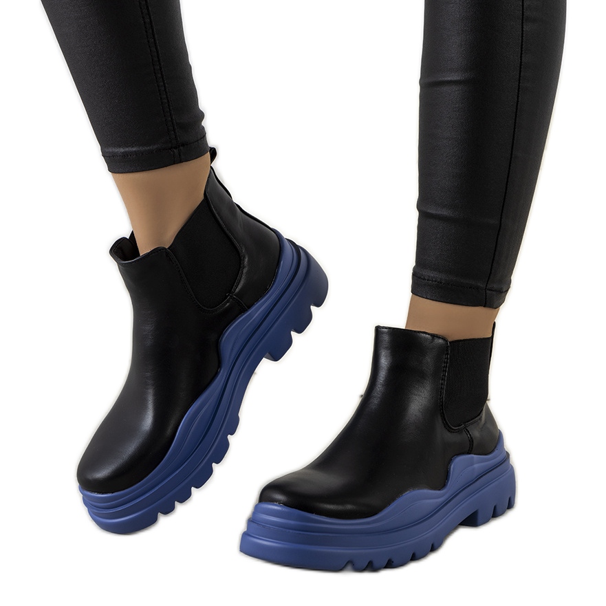 Modern, eye-catching Tausel boots are Must-Have this fall and winter. A smooth upper made of high quality ecological leather in classic black combines with a expressive blue platform, creating a fashionable contrast perfect for urban styles.