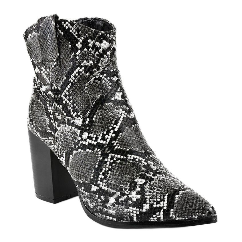 Black snake OL-11 block heel ankle boots are the perfect choice for women who value style and comfort. These elegant black shoes feature a unique animal pattern that gives them character and makes them a great match for a variety of styles, from casual to more formal.