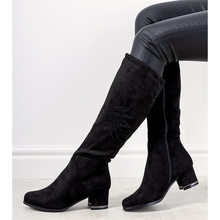 Here are the black Willka insulated block heel boots that will perfectly complement your autumn/winter wardrobe. Made of elegant, suede eco-leather, these boots wonderfully combine style with comfort. Delicate zircon decoration adds chic and unique character, and the classic cut means they will match many styles.