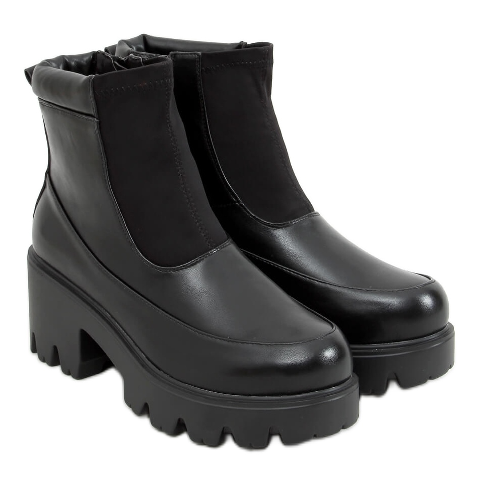 Discover style and comfort with the black CH19208 Black chunky sole ankle boots! These extremely fashionable shoes, perfect for autumn, are sure to catch the eye. They are characterized by a massive, wide 7 cm heel and a 2.5 cm platform, which provides excellent stability with every step.