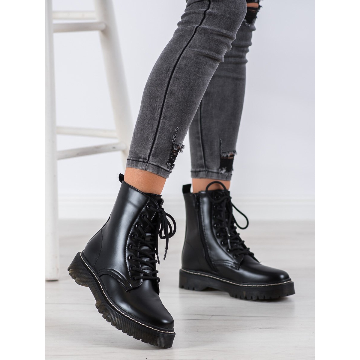 Don't wait and enhance your styling with SHELOVET Black Combat Boots, which will surely attract attention and give you self-confidence!