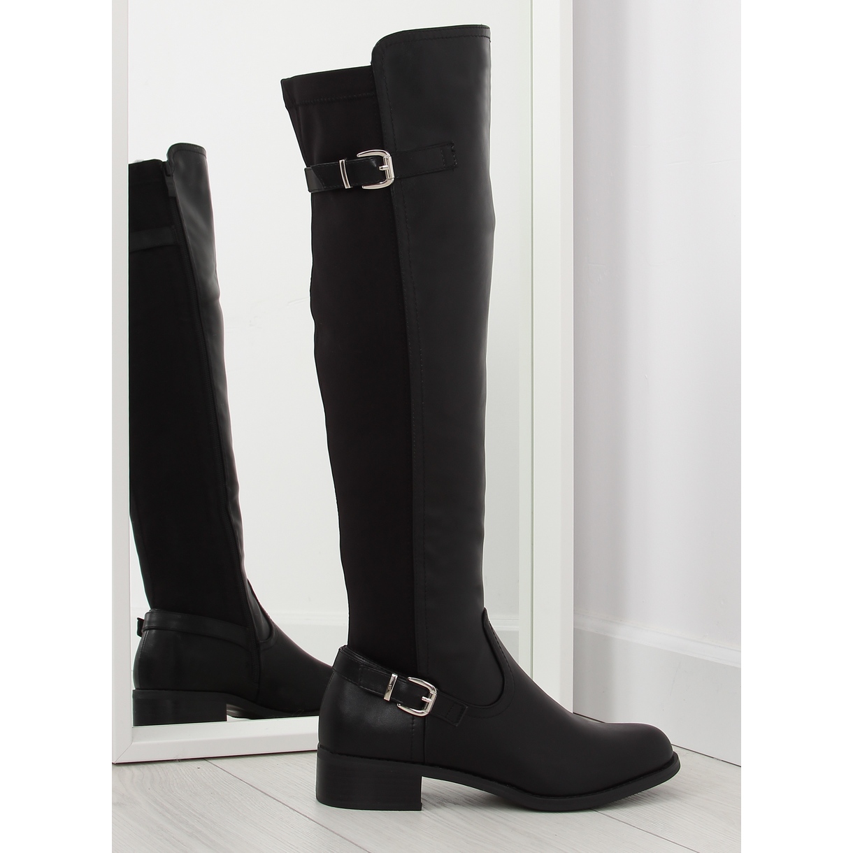 We offer elegant women's riding boots in black, which combine modern design and comfort of wearing. These flat boots are distinguished by their slim toes, which makes them look extremely graceful on the leg. Two straps with buckles add character, and the elastic upper perfectly adapts to the shape of the legs, providing comfort all day long.