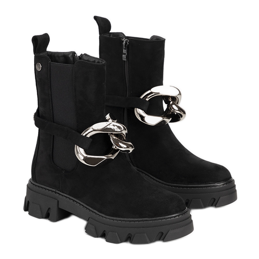 Elegant Gareau boots combine a fashionable look with convenience of use. Made of suede ecological leather, decorated with a metal chain on a detachable strap around the ankle, they are an effective accent of every autumn and winter stylization.