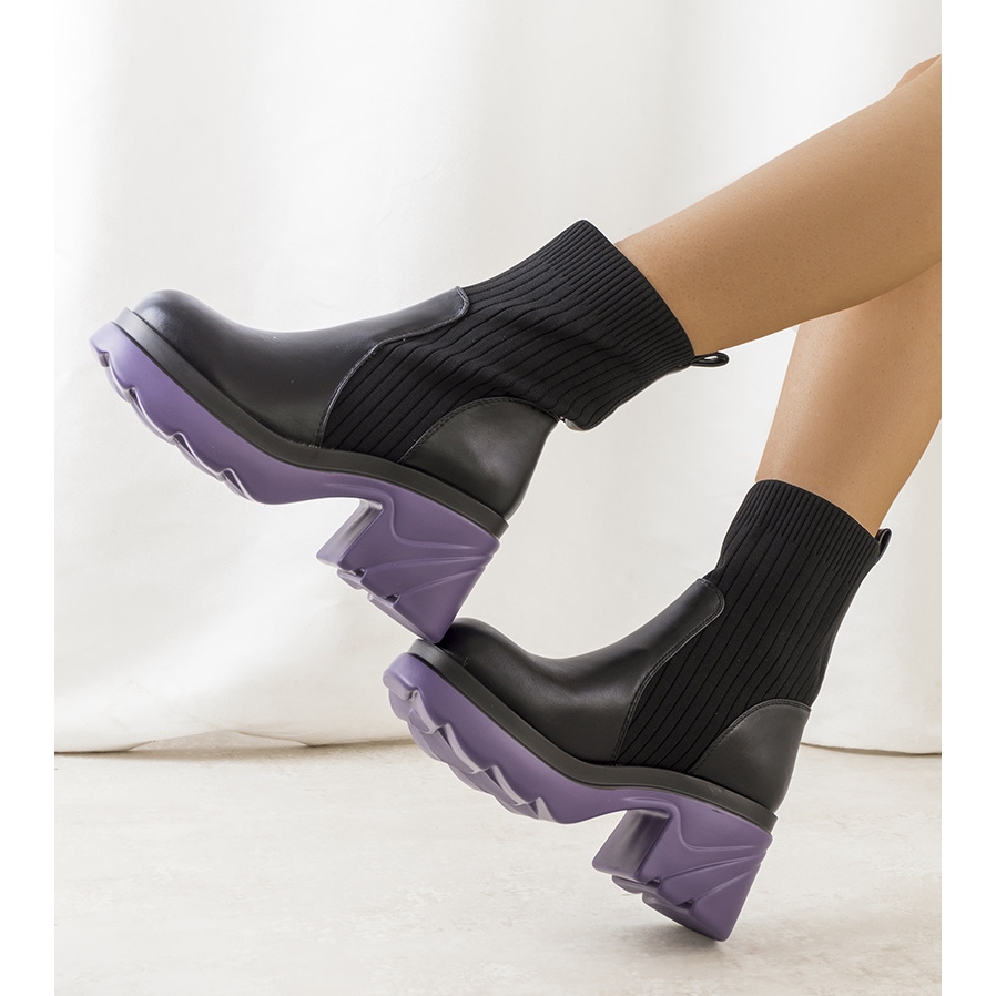 Modern Tomlin socks (model Q747) combine classic elegance with a bold accent - a purple, high sole that immediately attracts attention. Thanks to the flexible, material upper, they perfectly adapt to the leg, ensuring the comfort of wearing all day. This is a proposal for women who value fashionable detail while maintaining convenience and functionality.