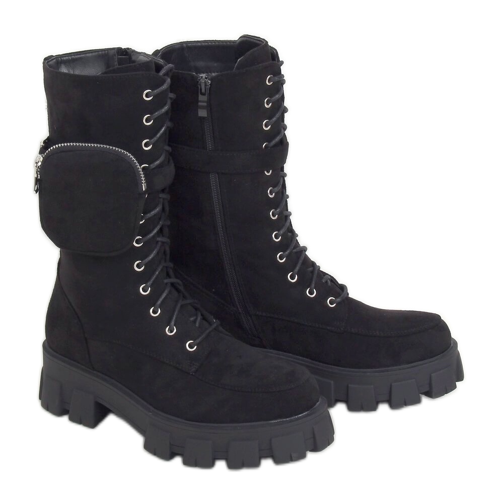 Discover the fashionable and functional black NC1111 Black boots with a pouch, which are sure to attract the attention of every style lover. These suede women's boots are the perfect choice for women who want to stand out in the crowd and follow the latest trends. The massive sole is not only stylish but also comfortable, which makes them a great choice for everyday wear.
